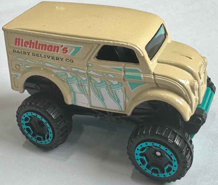 مدل Monster Dairy Delivery یکی از طراحیهای محبوب هاتویلز است؛ ترکیب ون کلاسیک با لاستیکهای بزرگ حس یک خودروی قدرتی و جذاب را ایجاد کرده. رنگآمیزی کرم و آبی، رینگهای آبی متالیک و جزئیات دقیق روی بدنه باعث شده این مدل در مجموعه Let’s Race کاملاً متمایز باشد.